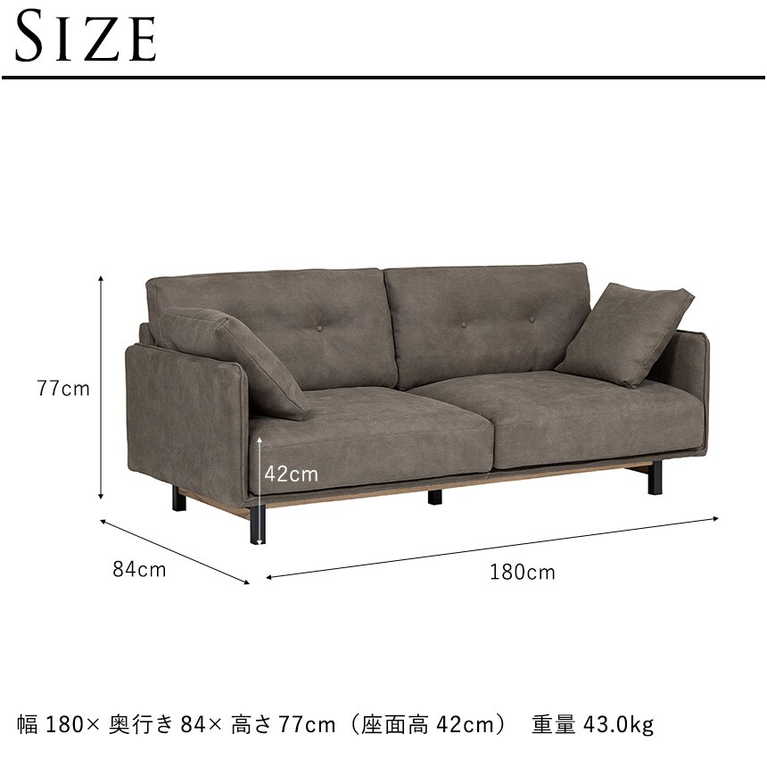 サイズ/重さ:幅180×奥行84×高さ77cm 座面高 42cm 重量43kg