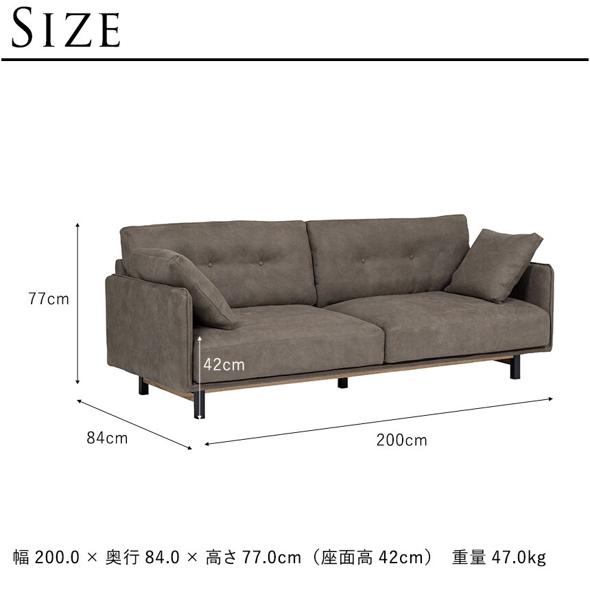 サイズ/重さ:幅200×奥行84×高さ77cm 座面高 42cm 重量47kg