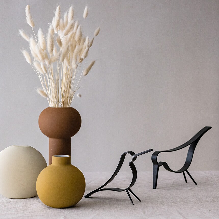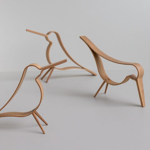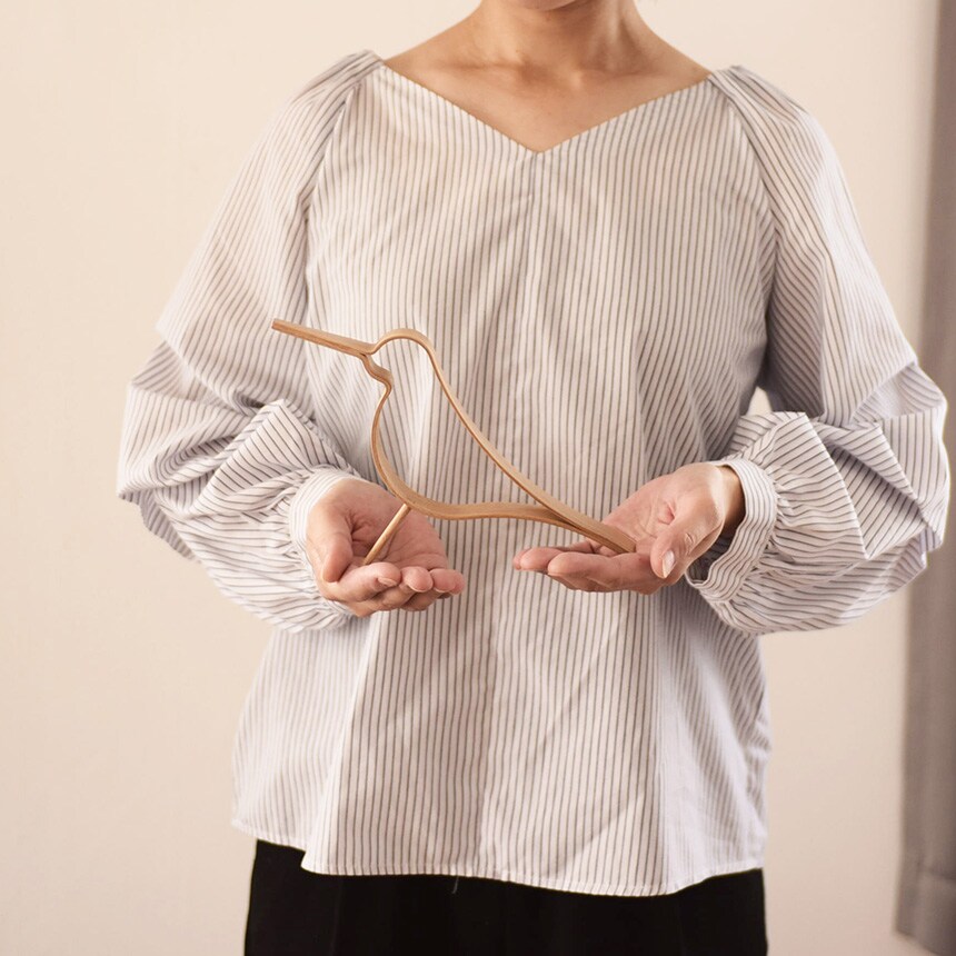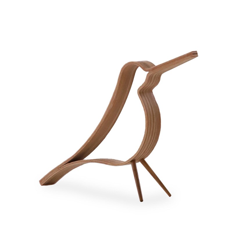 古い工芸品からインスピレーションを受け、現代アートを融合した鳥の木製オブジェ。