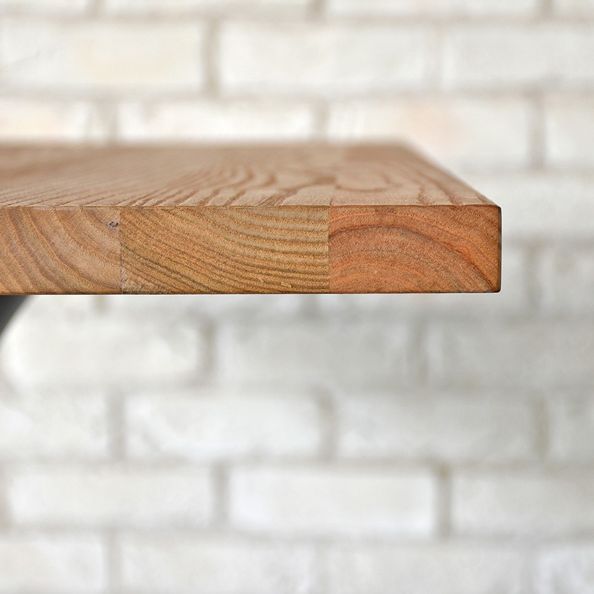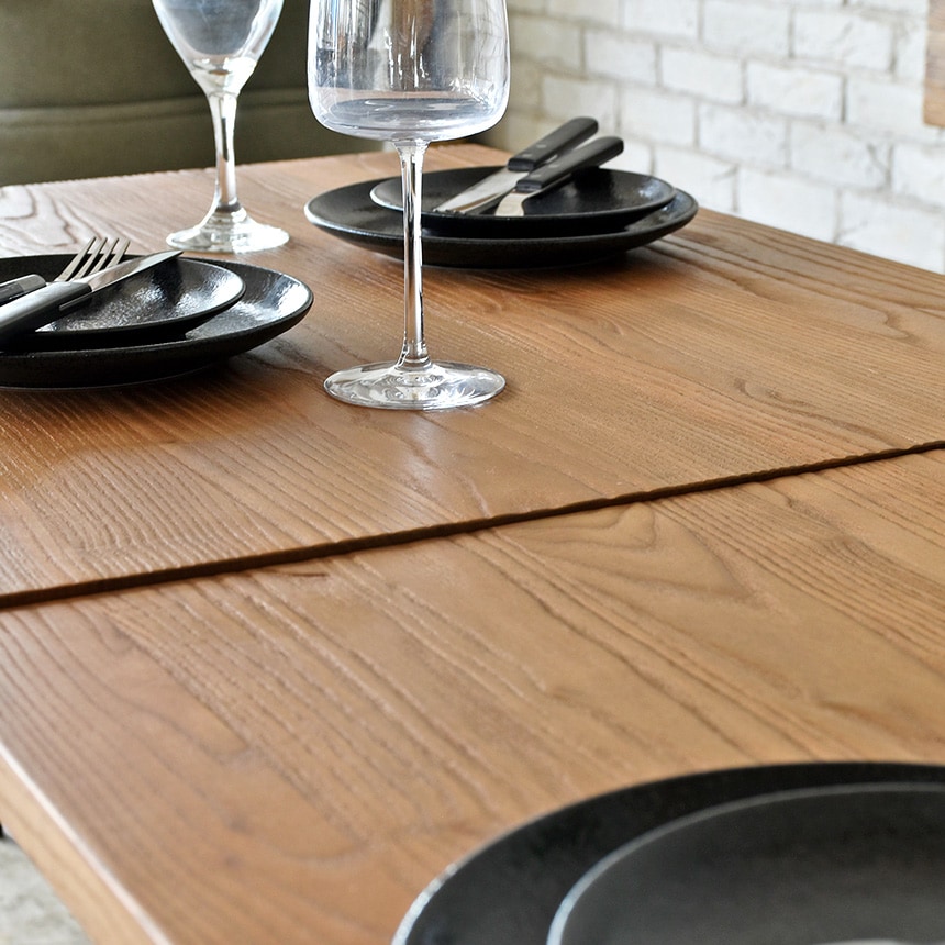 厚めの天板には木材が本来持っている木目を生かしたラフな仕上げを行うことにより、
