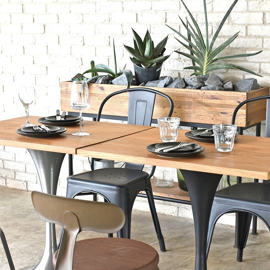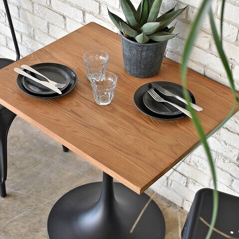備考:天然木の天板とスタイリッシュなスチールの脚部が特徴的なデザインのスクエアテーブル。