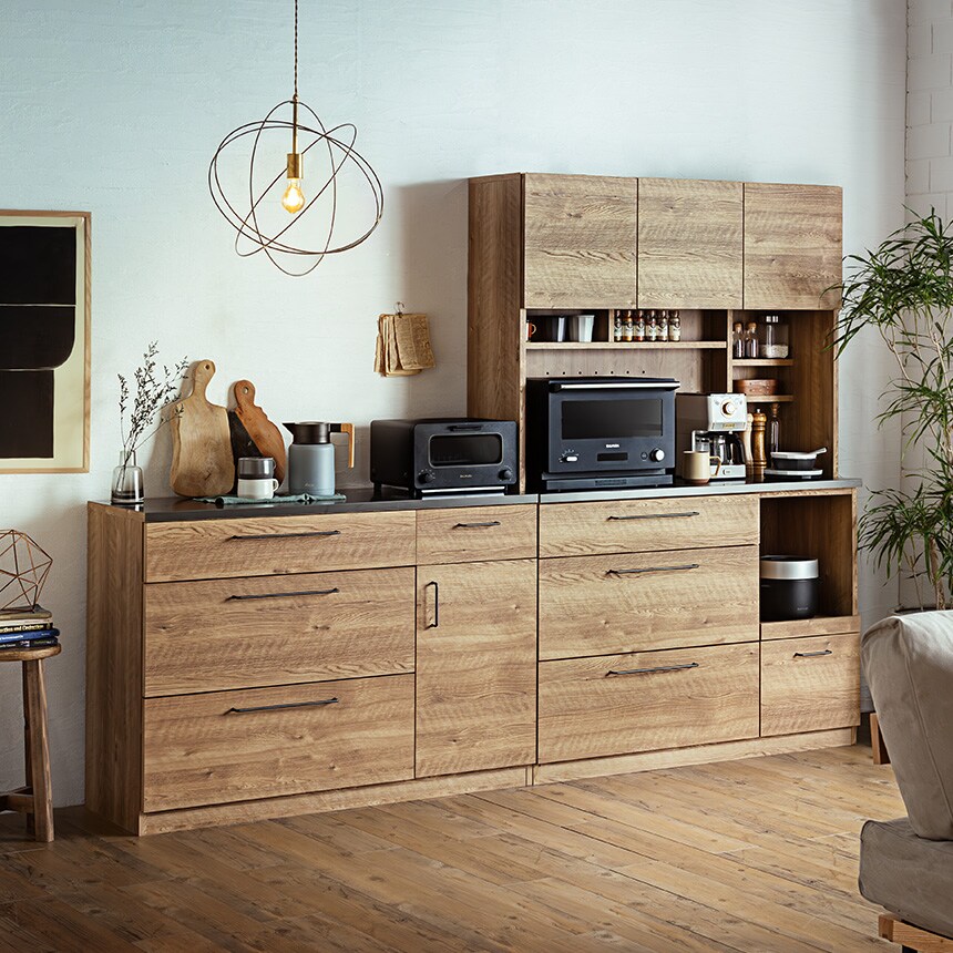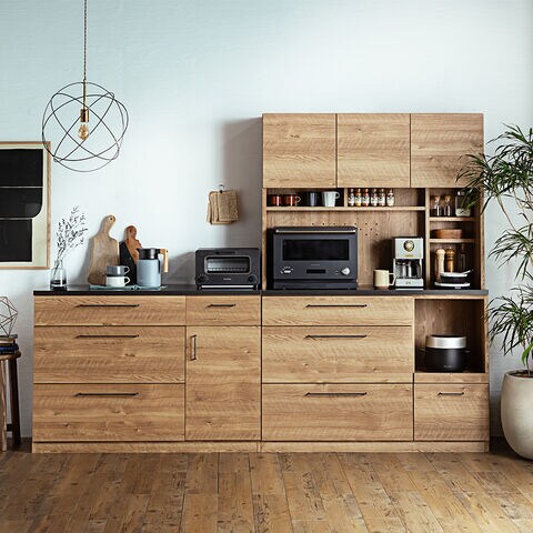 広々とした天板が特徴的で、キッチンアイテムを設置したり、
