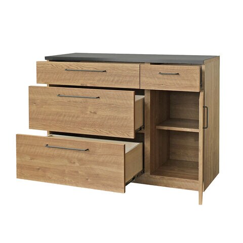 材質:天板:特殊鋼板、引出前板:強化紙化粧繊維板、本体:プリント紙化粧繊維板、引手:スチール