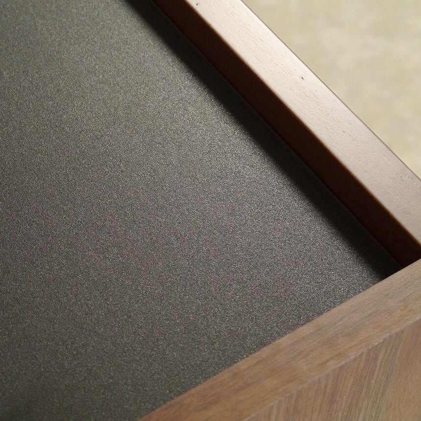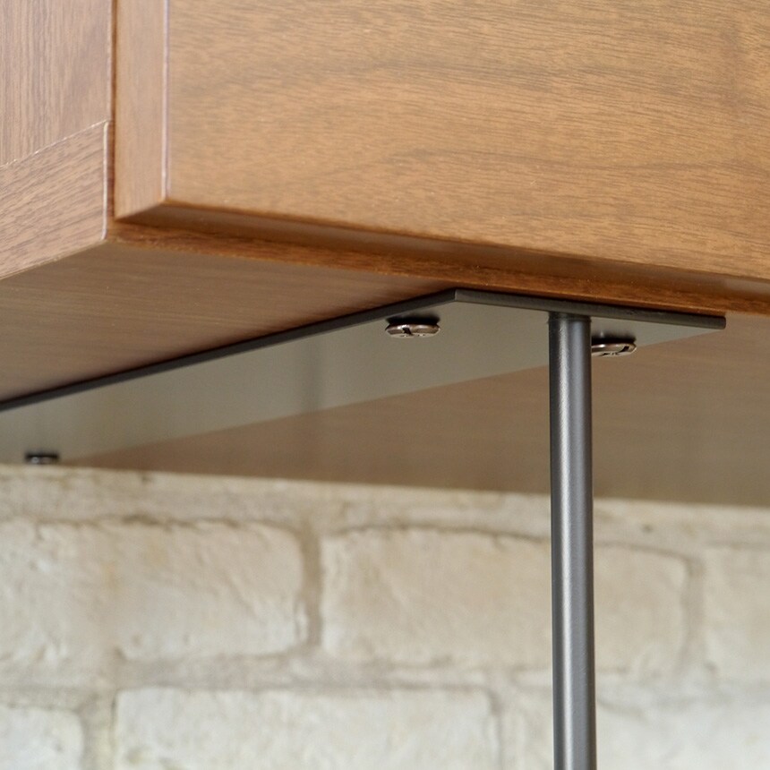 材質:天板:オレフィン、側・内装:プリント化粧合板、前板:ウォールナット突板、脚部:スチール