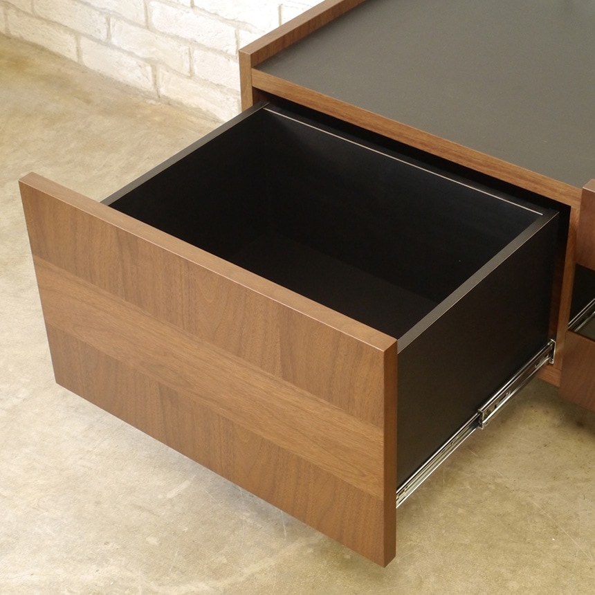 引き出しはフルスライドレール仕様引出しはスムーズな開閉が出来て、奥まで物を取り出しやすい仕様です。