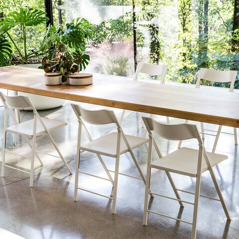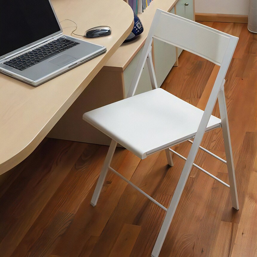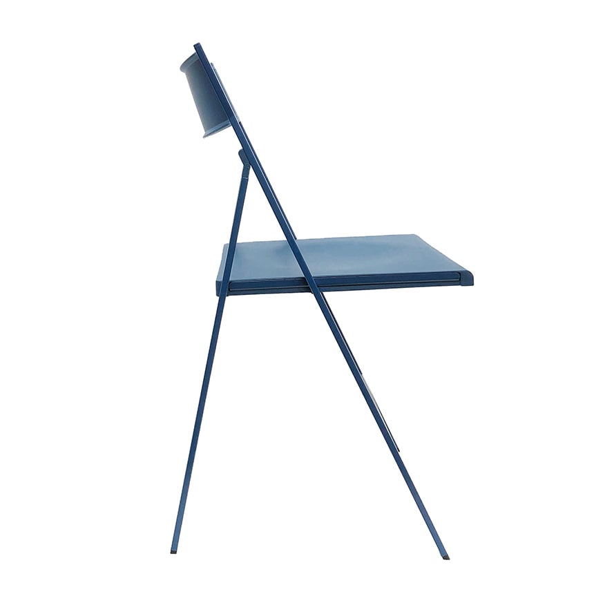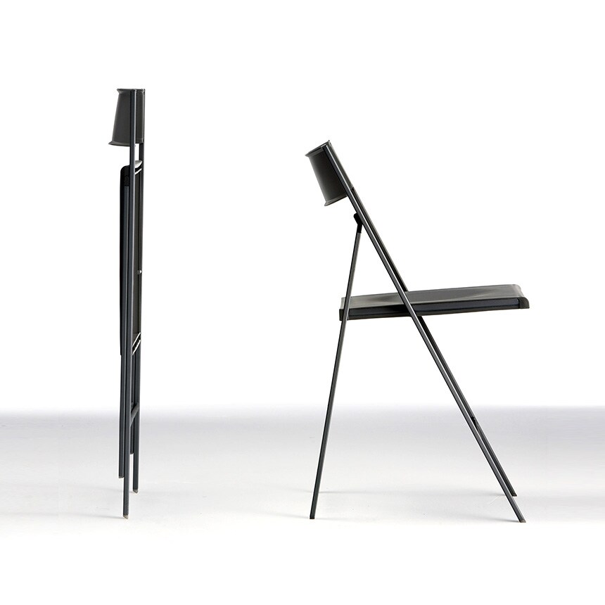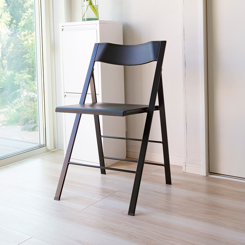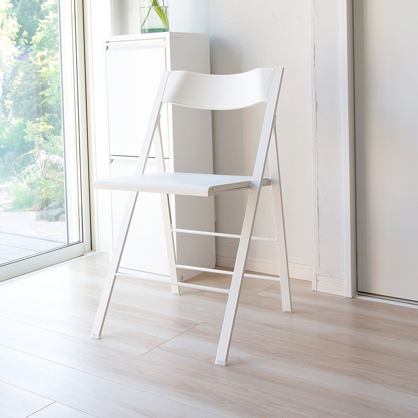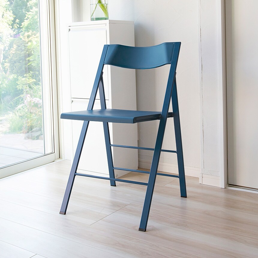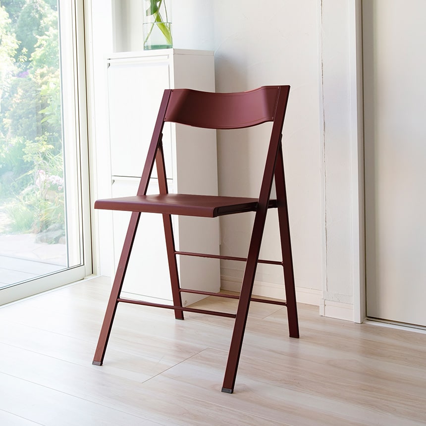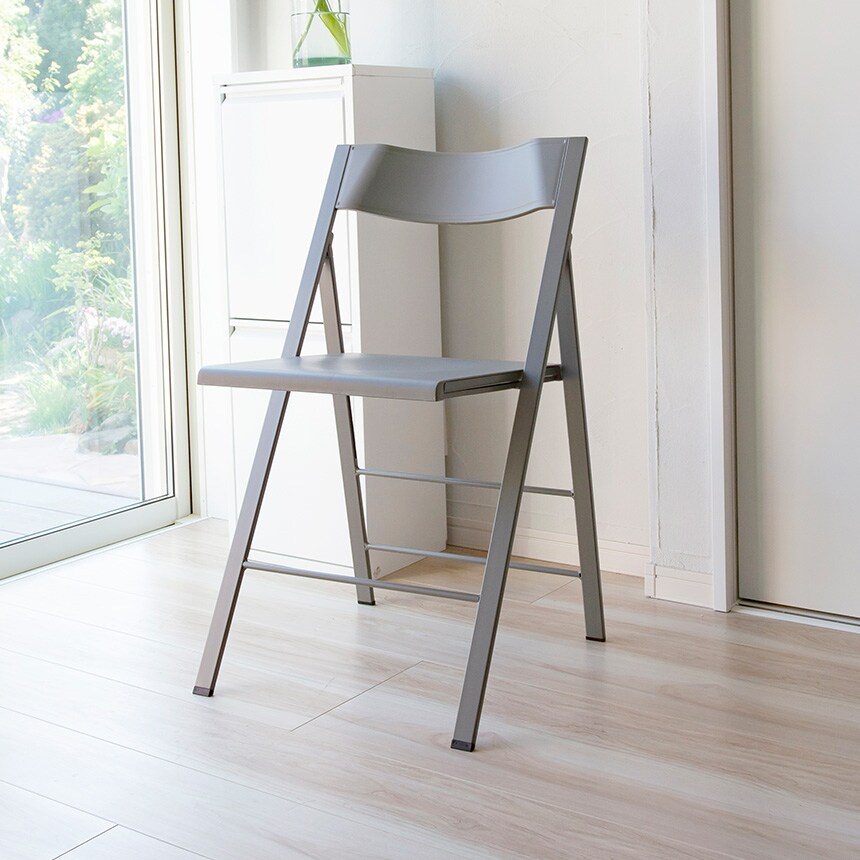重ねて収納しても場所を取らない、シンプルで機能的な薄型折畳みチェアです。