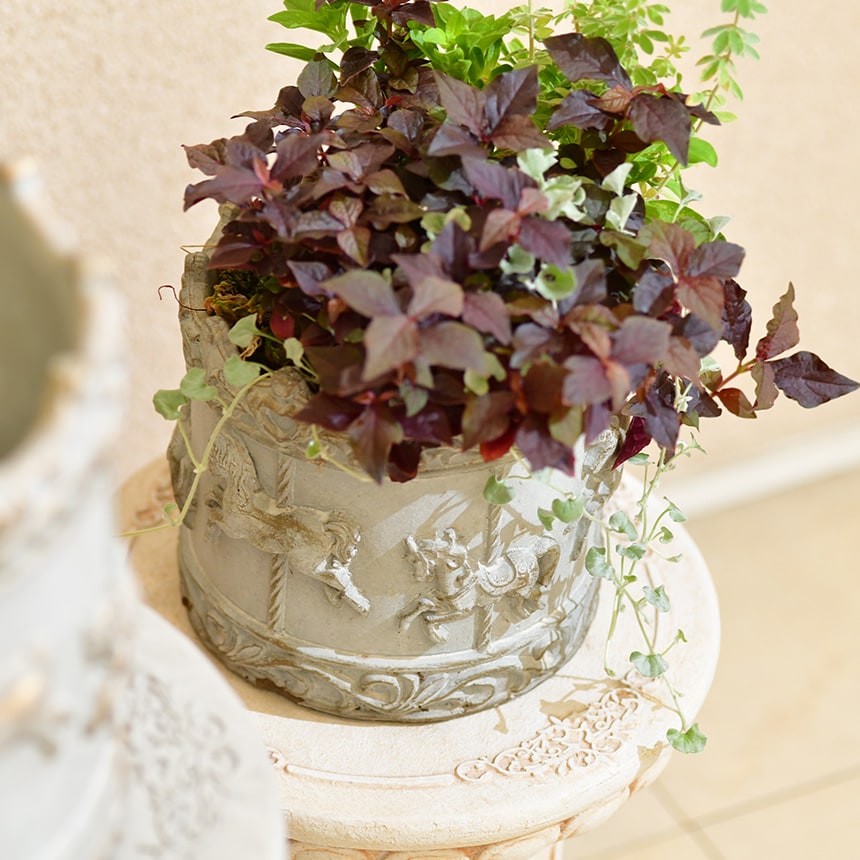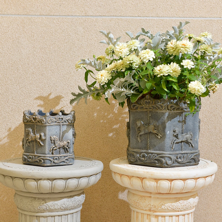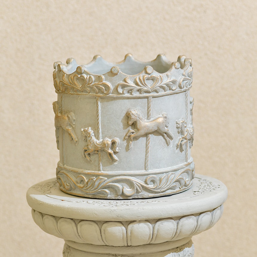 アンティークなオブジェとしても魅力的なメリーゴーランドのプランター。