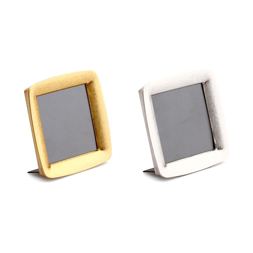 額:つややかな輝きが美しい写真立て。金属の縁がお写真を明るく引き立てます。裏面の脚部はマグネットで簡単に取り外すことができます。