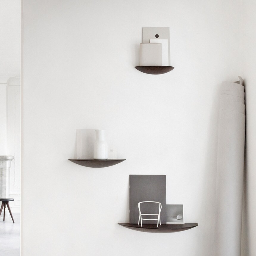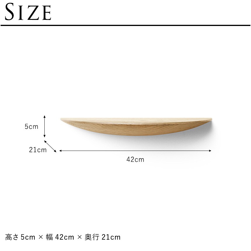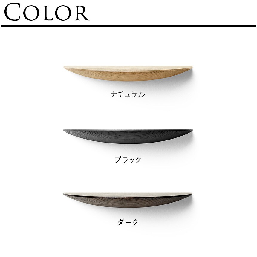 3つのサイズ展開半円形のシンプルなシェルフは、S、M、Lのサイズ展開。
