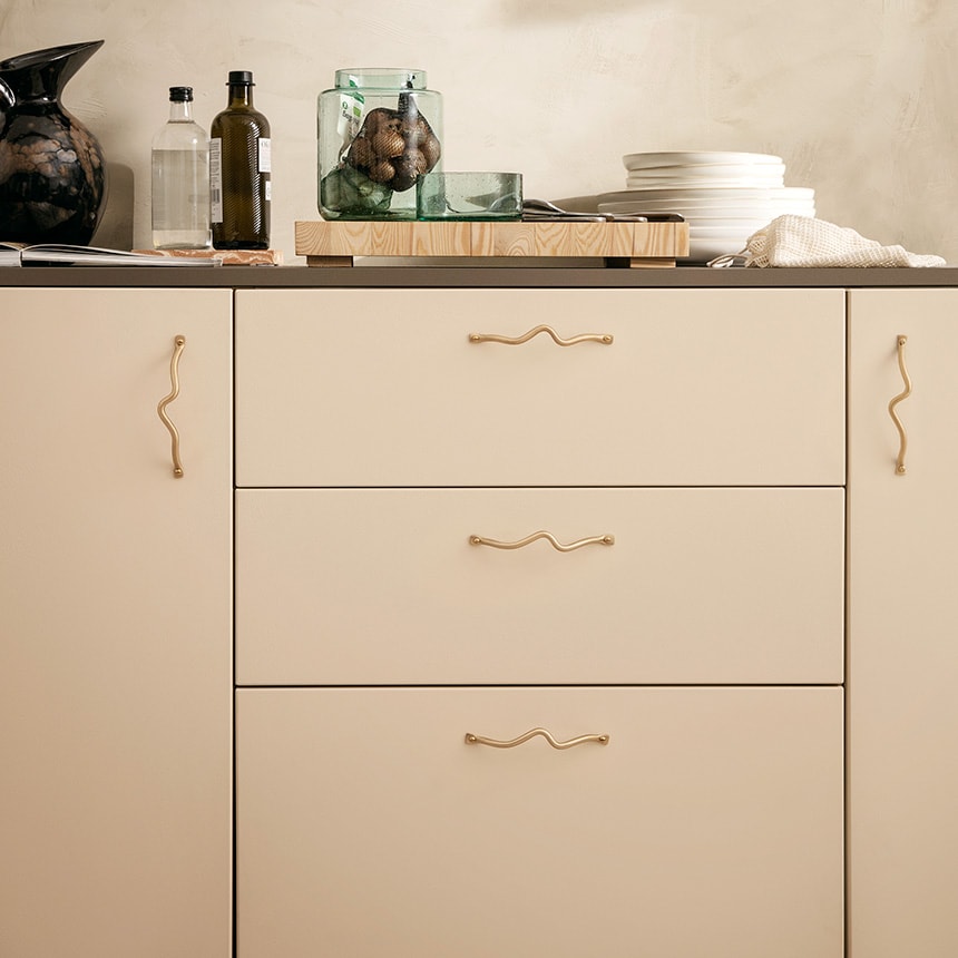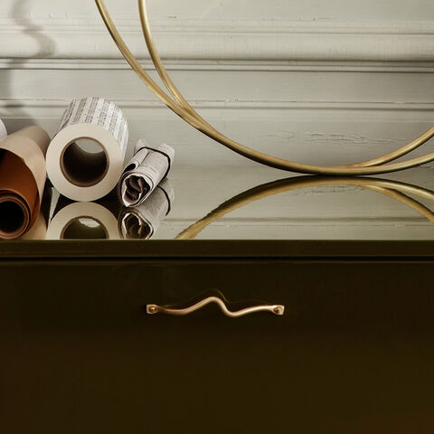 このハンドルをチェストや引き出し、棚の取っ手として取り付けるだけで、シンプルな家具が一気に洗練された印象に。