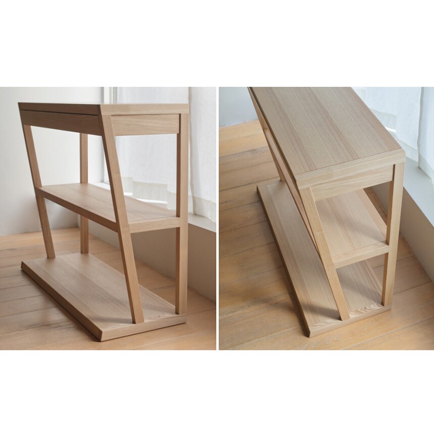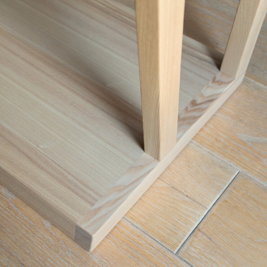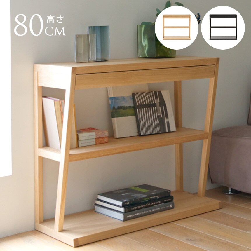 天然木タモ材の美しい木目が際立つシェルフ付きのコンソールテーブルです。