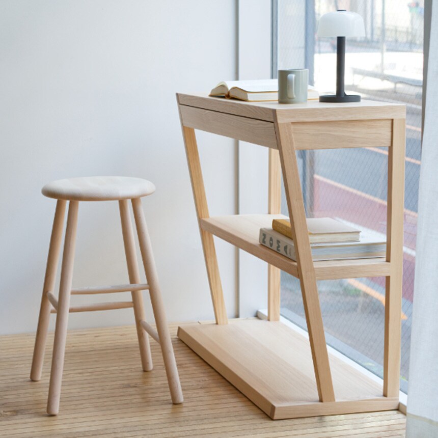 表面はマットなウレタン塗装で保護されており、ナチュラルカラーは経年変化により色味が深まるため、長く使うほどに味わいが増すのも魅力です。