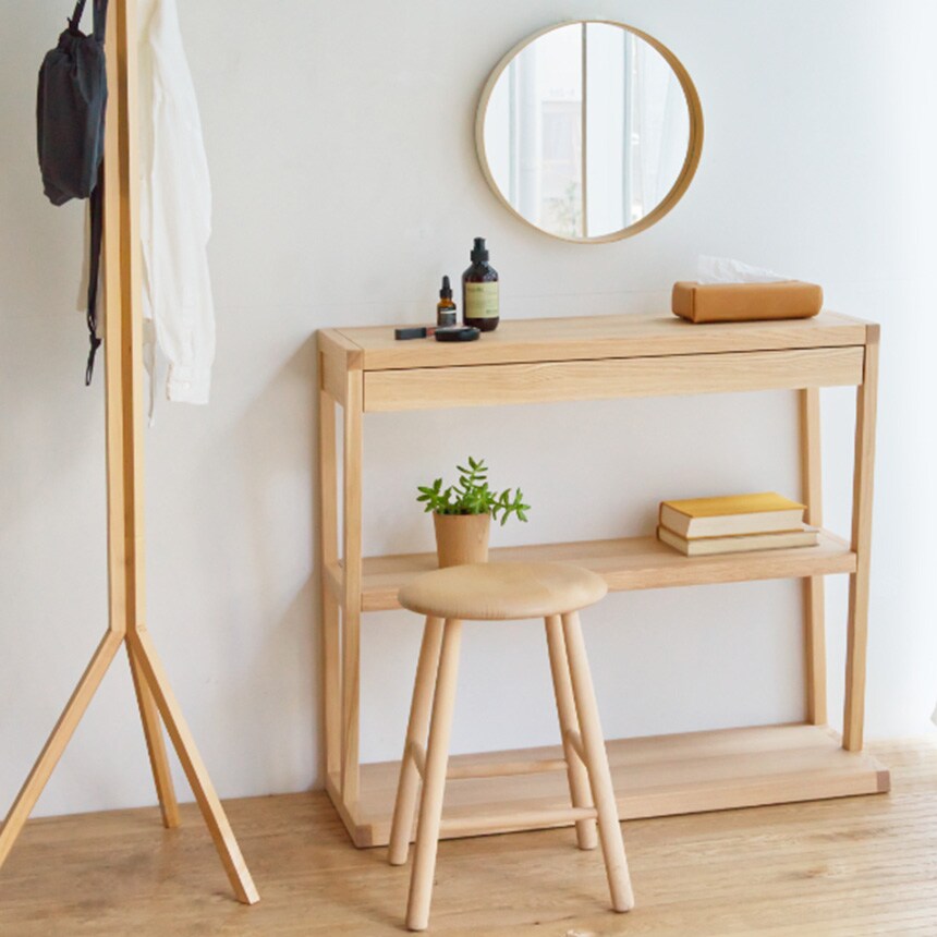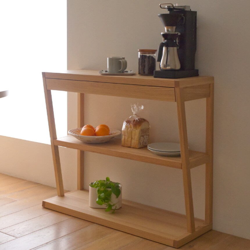 ダイニングではキッチン家電の置き台やサブテーブルとして便利に使え、ミラーを置いてドレッサー代わりにするなど、多用途に対応します。