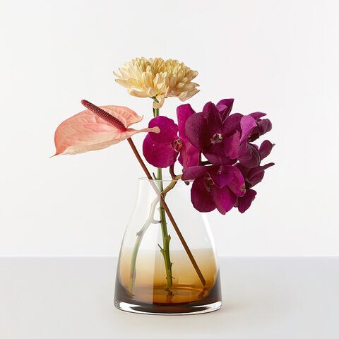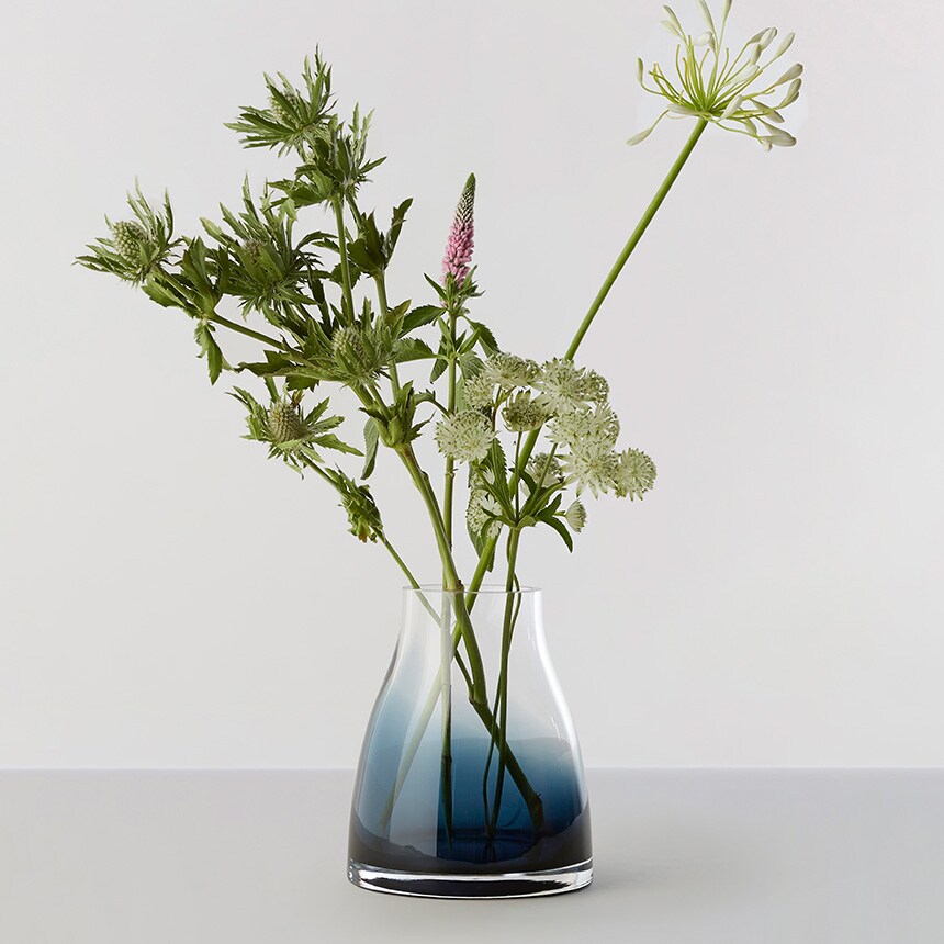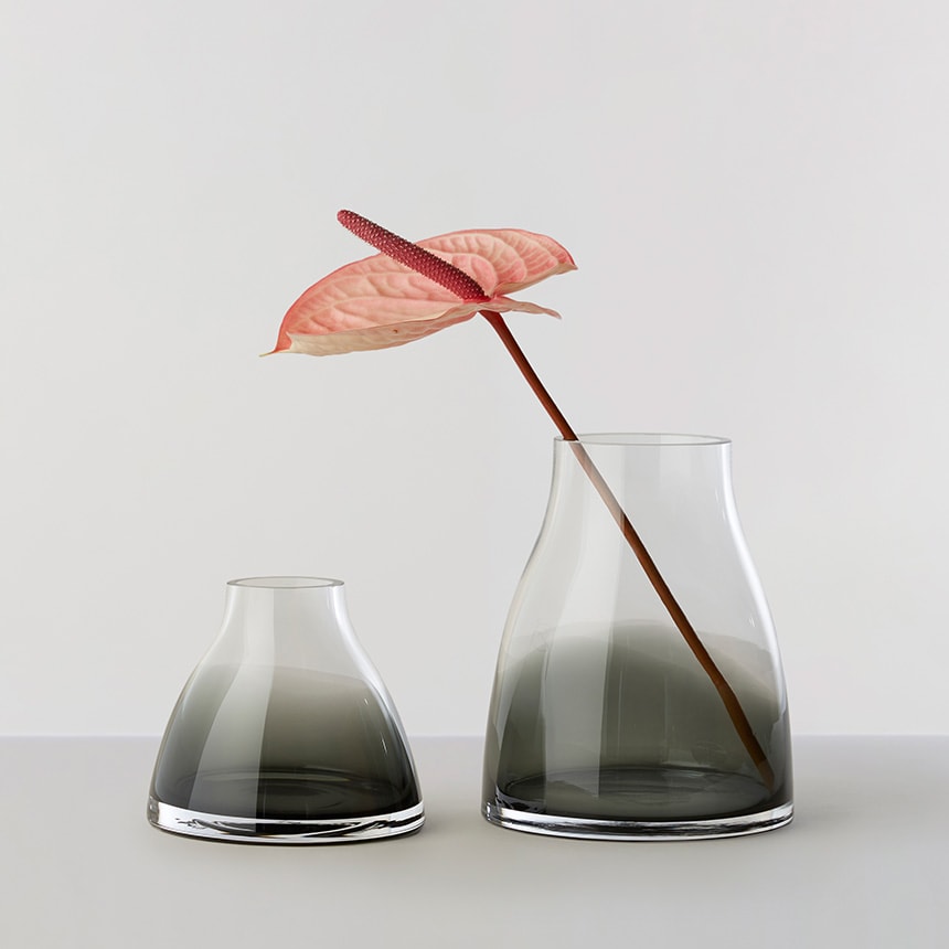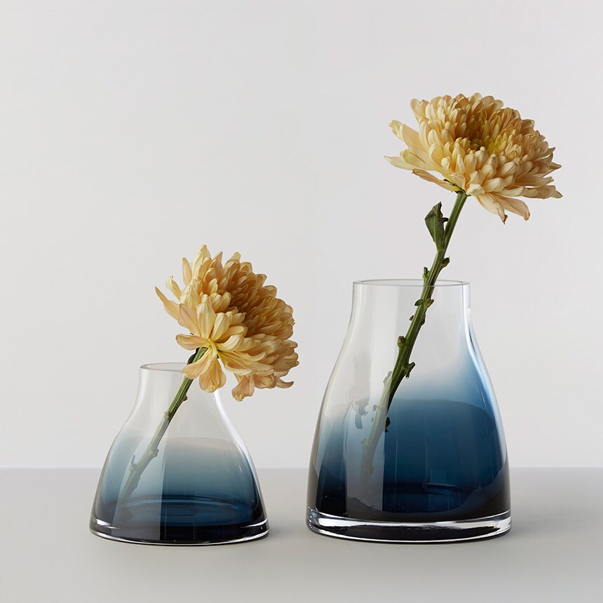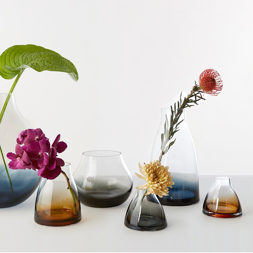 Ro Collectionのフラワーベースは、クリスタルクリアなガラスと色ガラスが溶け合い、深いグラデーションが美しく表現されたガラス製の花器です。