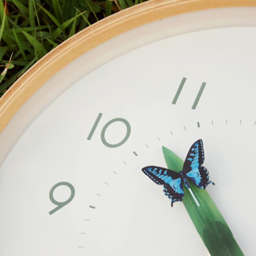 時計の針と昆虫がゆっくりと動くので、時間を忘れて眺めていると、心が落ち着き、ゆったりとしたひとときを感じることができます。