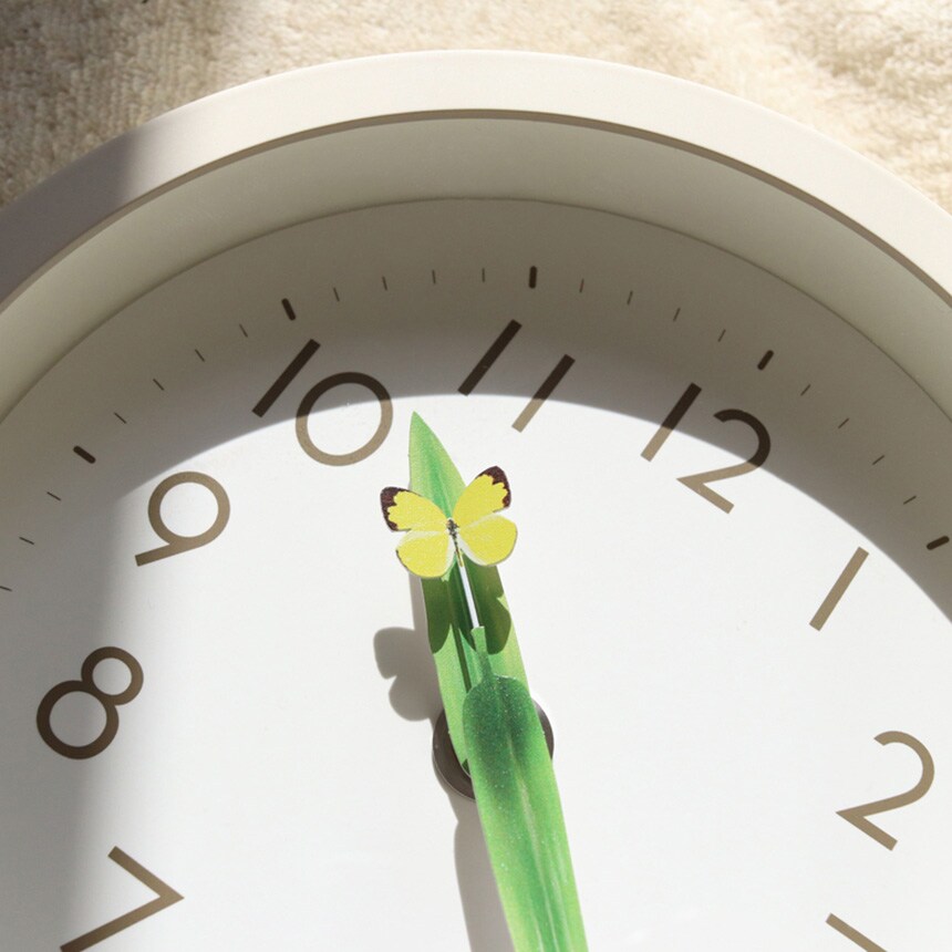 1時間に1度、分針と時針が反対方向を指すタイミングで、昆虫たち(モンキチョウやてんとう虫)が葉っぱの上で羽を休めるシーンが展開されます。