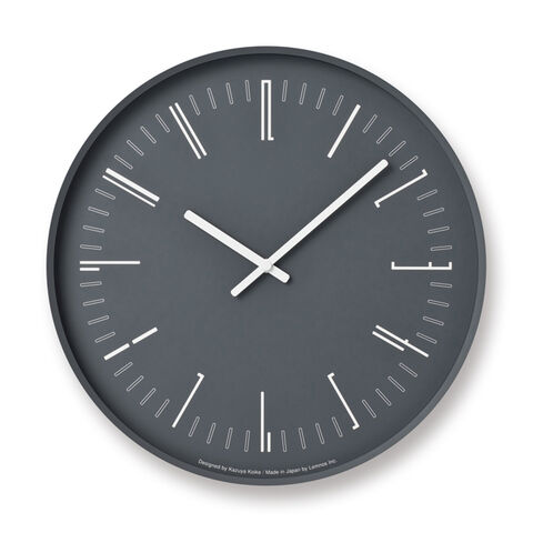 この壁掛け時計のデザインは、数字を線で表現したユニークなインデックスが特徴です。