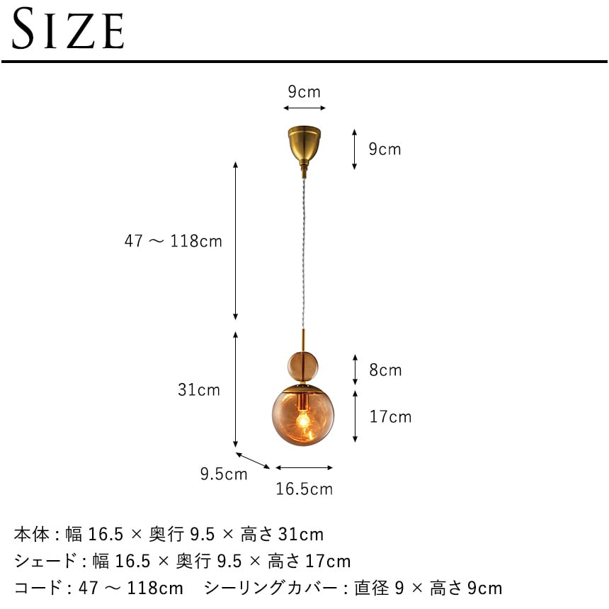 シェード:幅16.5×奥行9.5×高さ17cm