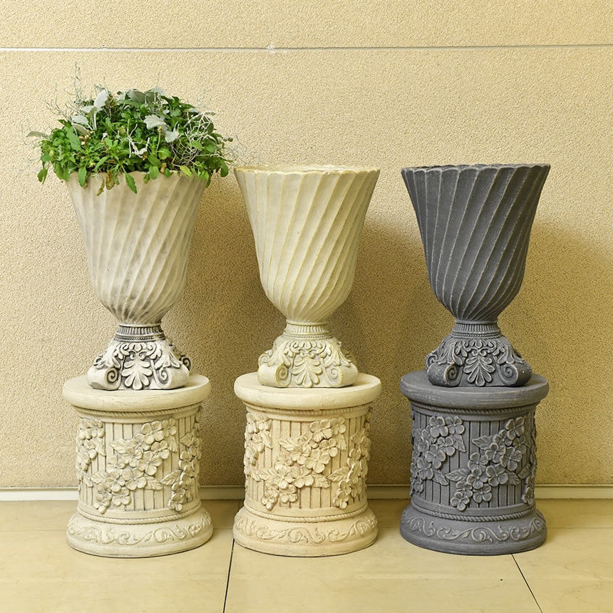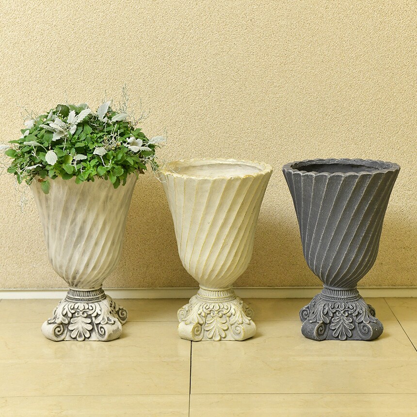鉢 プランター アンティーク ゴブレット ローマ風 スパイラルレリーフ B 高さ39.5cm