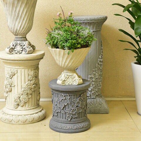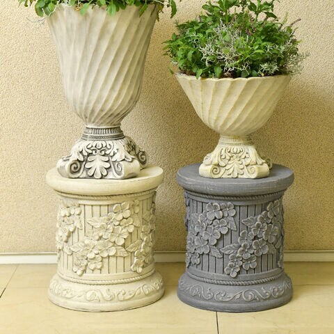ガーデン雑貨 フラワースタンド 花台 古代ローマ風 コラム C 高さ29cm【アイボリー】 プランタースタンド 鉢台 飾り アンティーク オブジェ 屋内 屋外