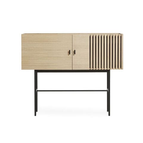 「アレイ サイドボード」は、現代建築に多く見られる木製スレート外装からインスピレーションを得たデザイン。