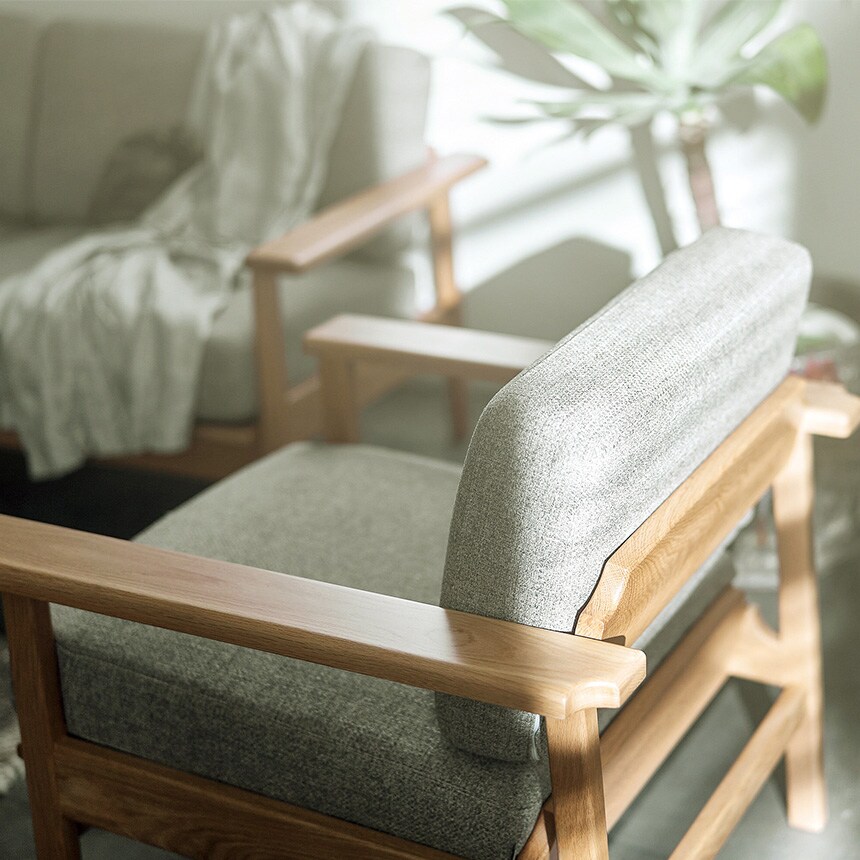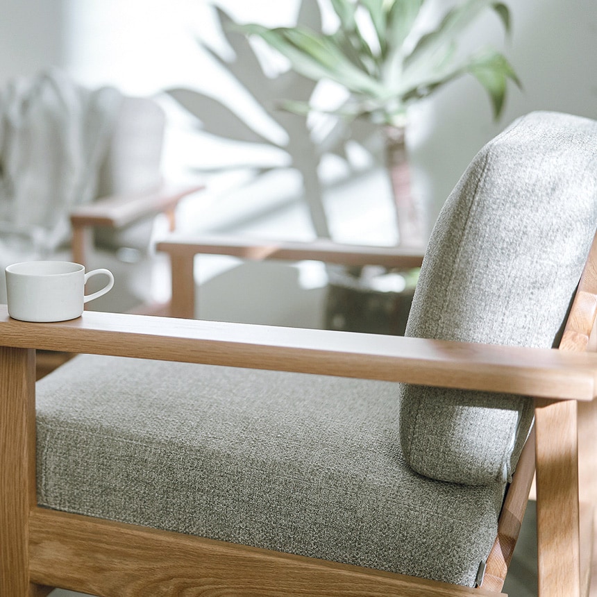 ・フレームには木目が美しいオーク無垢材を使用。ラッカー塗装を施し、耐久性を持たせています。