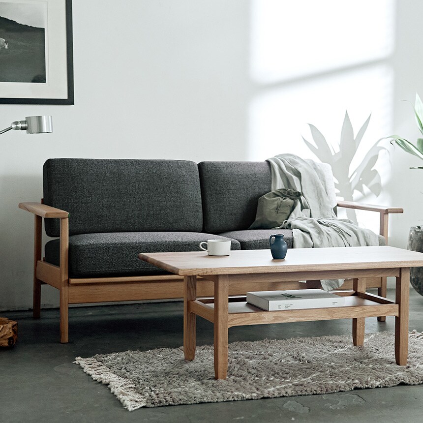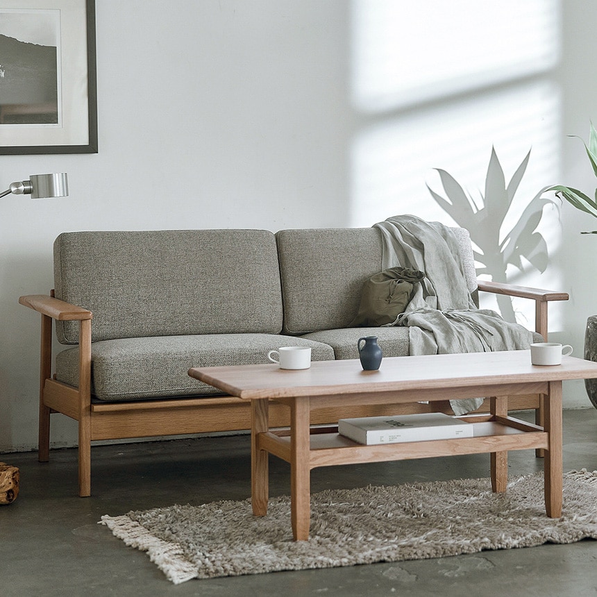 ・フレームには木目が美しいオーク無垢材を使用。ラッカー塗装を施し、耐久性を持たせています。