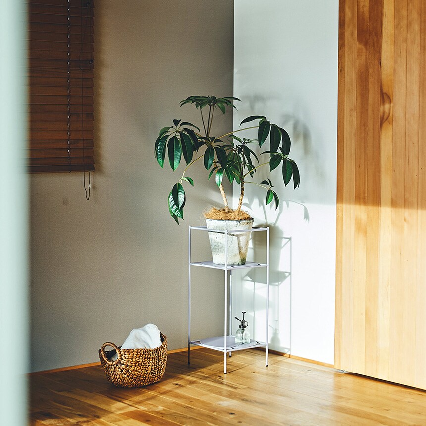 大きめの植物を2段目に置いても安定感があります。