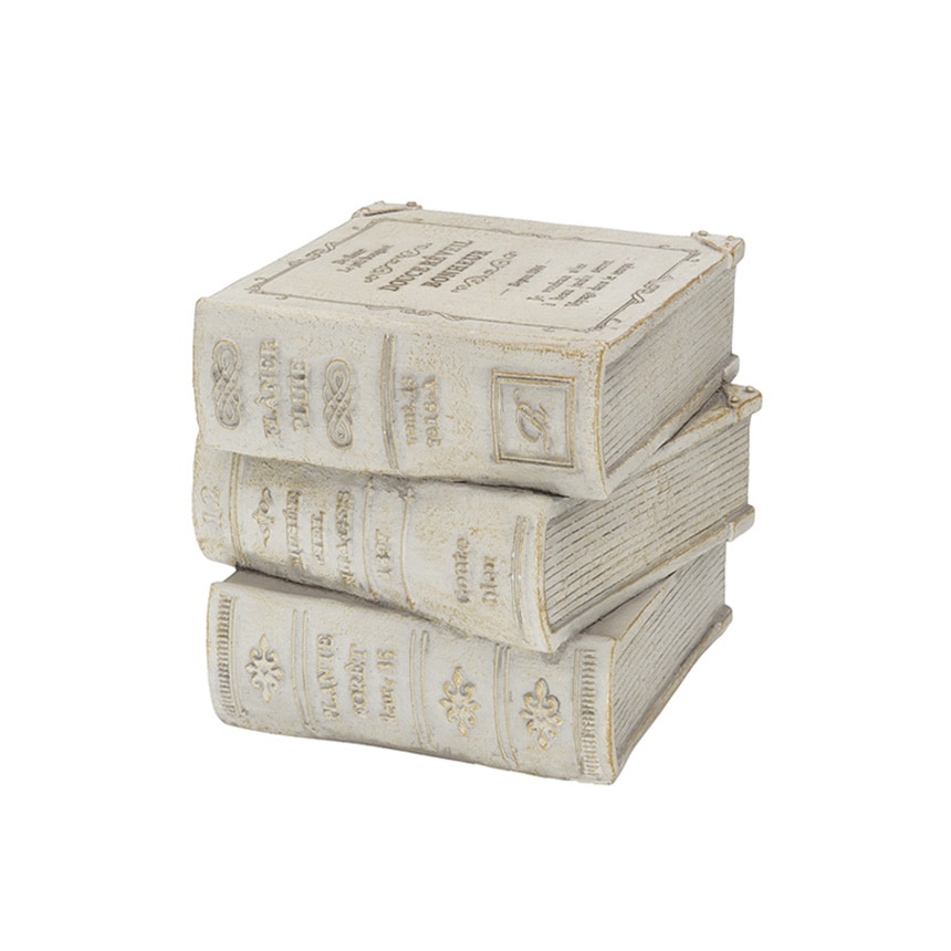 無造作に積み重ねた本をモチーフにしたアンティーク調の花台。