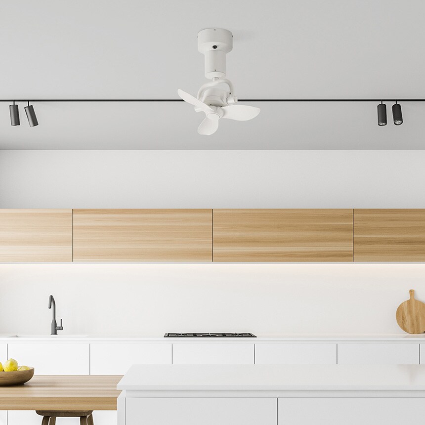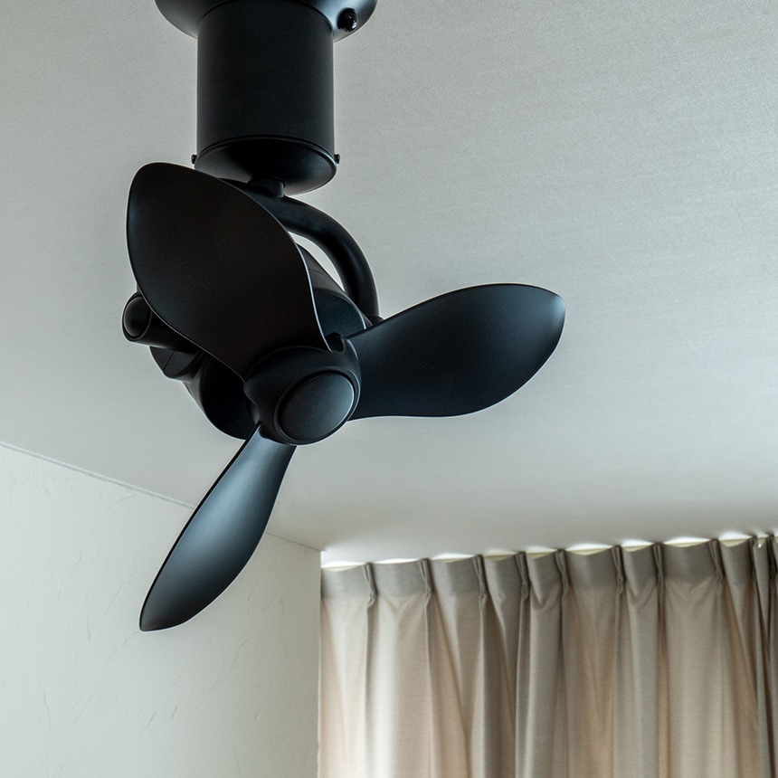 空間に自然に溶け込むミニマルなデザインのシーリングファン。