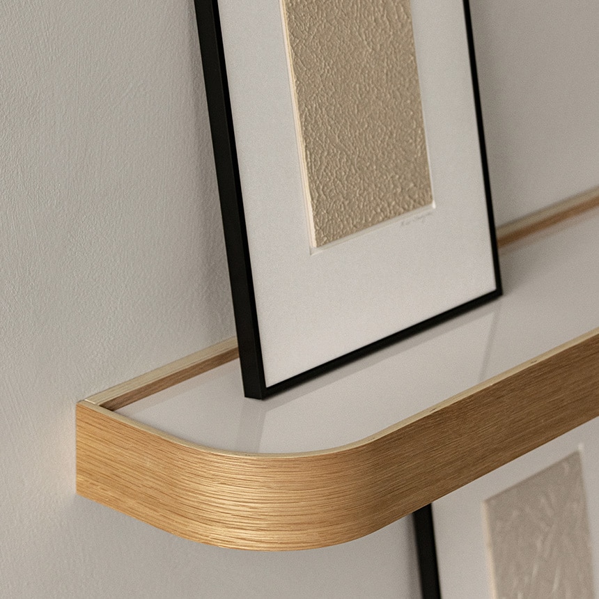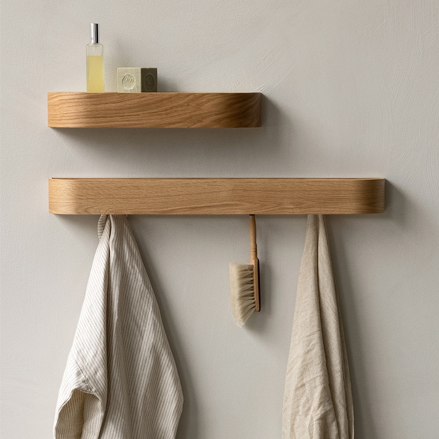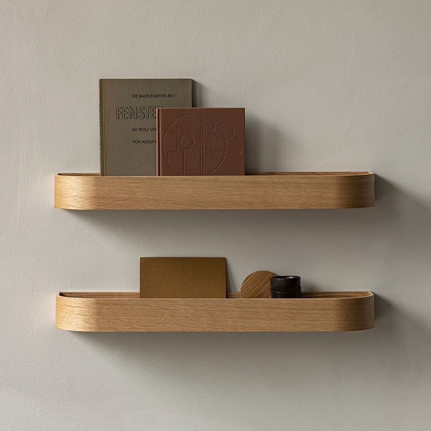 AudoのEpochエポックシェルフは、オーク材を使用したミニマルデザインのウォールシェルフ。