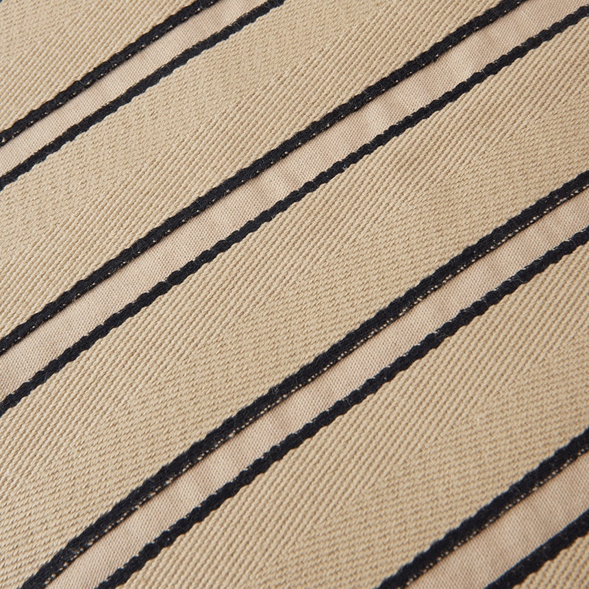 タイトな斜め織りが生む上質な質感と、丁寧な縁取りが、ミニマルで洗練された佇まいを演出します。
