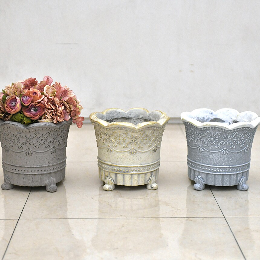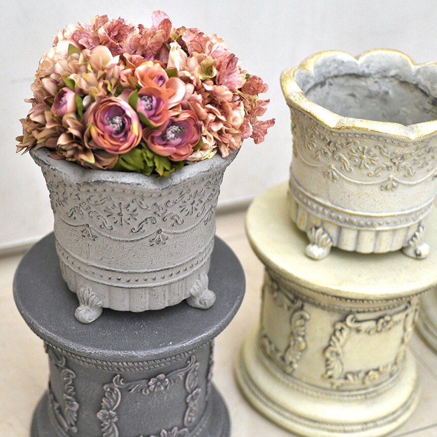 鉢 プランター アンティーク ドットレリーフ フットアップ