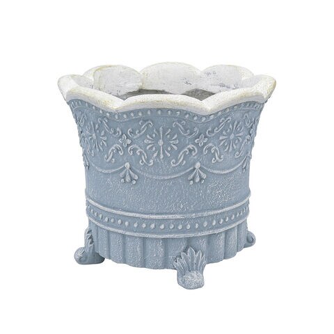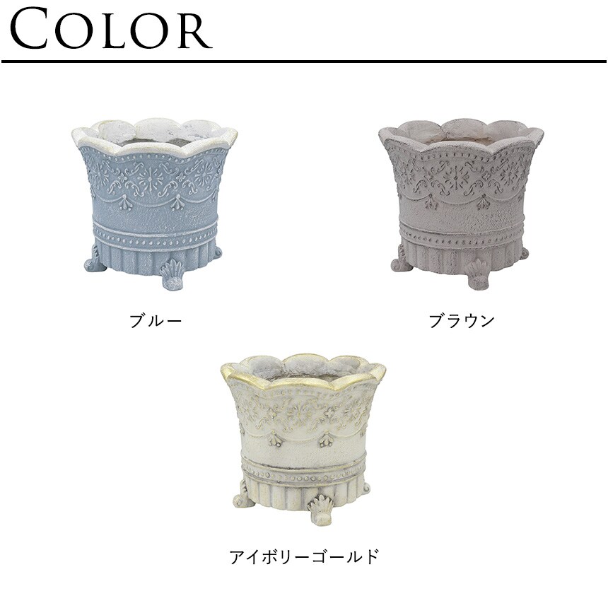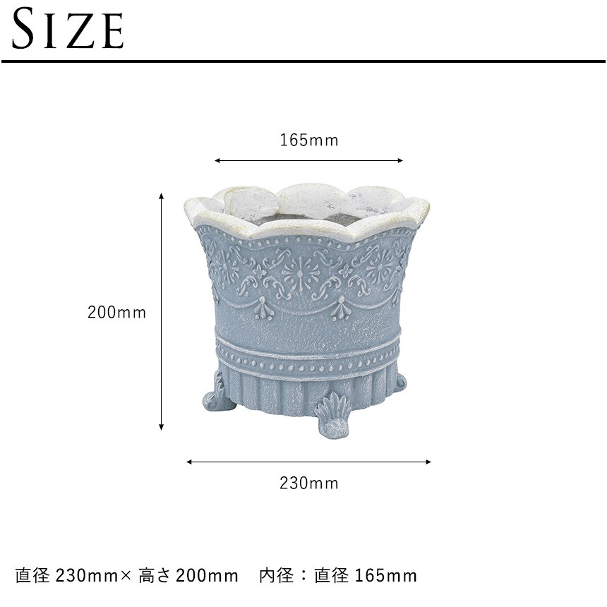 鉢 プランター アンティーク ドットレリーフ フットアップ 【ブルー】 屋外 プランターカバー 底穴あり 鉢カバー