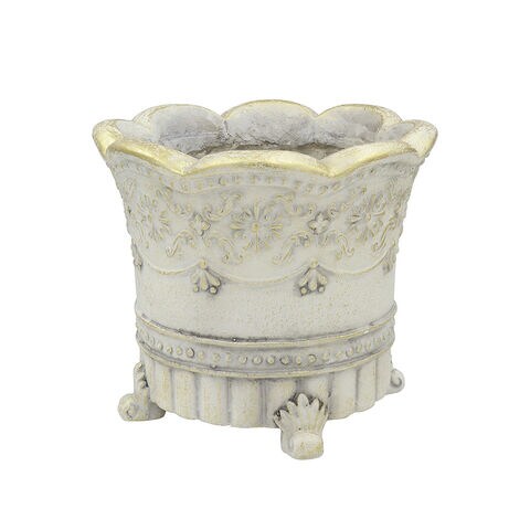 鉢 プランター アンティーク ドットレリーフ フットアップ 【アイボリーゴールド】 屋外 プランターカバー 底穴あり 鉢カバー