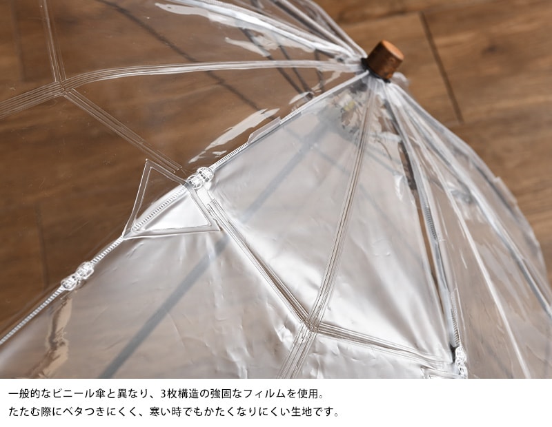 傘 ビニール 日本製 折りたたみ White Rose 折りたたみビニール傘 アメマチ 50cm 8本骨 2段階 折傘【ゴールド】おしゃれ ビニール傘