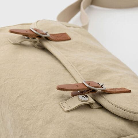 素材:10号パラフィン帆布(バイオウオッシュ加工)、本革(ブッテーロ)