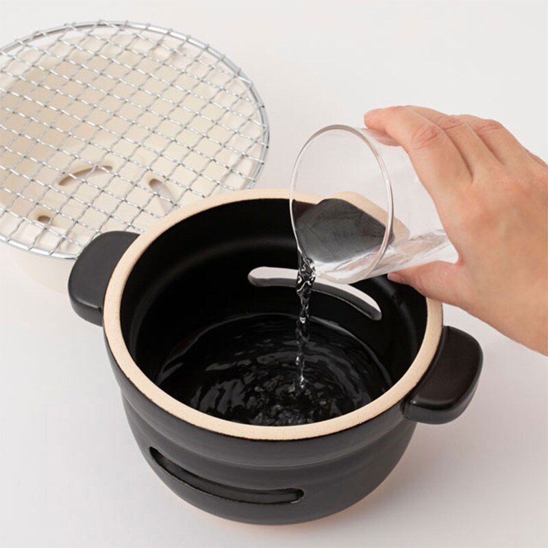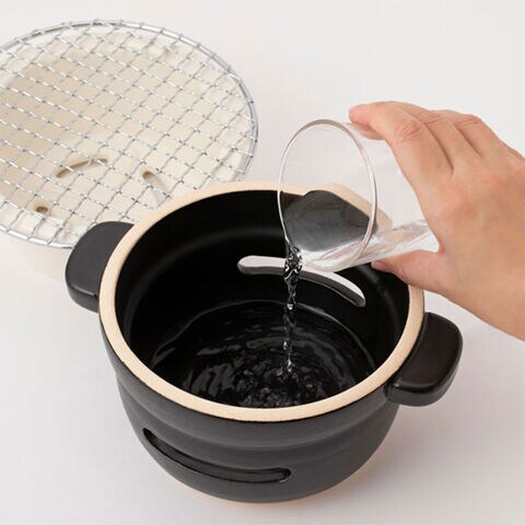 1:本体の穴の下まで水を張ります。灰や煙が少なくなります。
