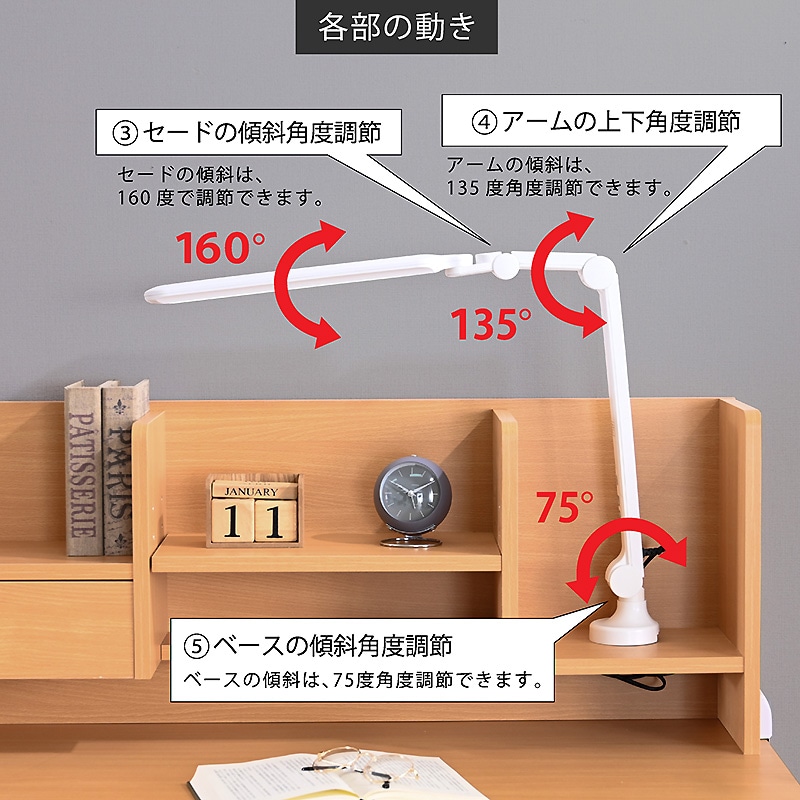 デスクライト NEW LED 調光 明るい 学習机 目に優しい 子供 おしゃれ クランプ 6段階調光付き テレワーク L型LEDデスクライト / ホワイト / -ART