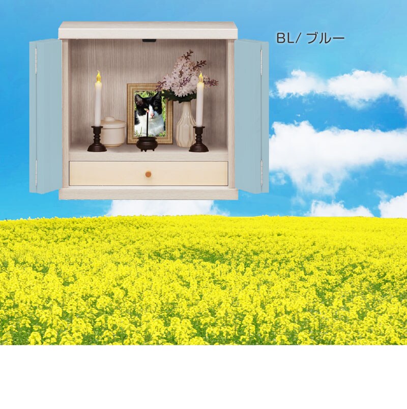 ペット仏壇 メモリアルボックス 国産 木製 パイン材 大型 小型 ミニ かわいい 観音開き ペット用仏壇 ペット供養 パステルカラー Rainbow Lサイズ / ブルー / -ART
