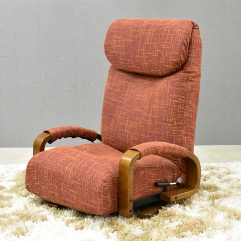 立ち座り楽 座椅子 ハイバック 肘付き 座椅子 高耐久 1人掛け 14段リクライニング ヘッド角度14段調整 360°回転 THEイス / レッド / -ART
