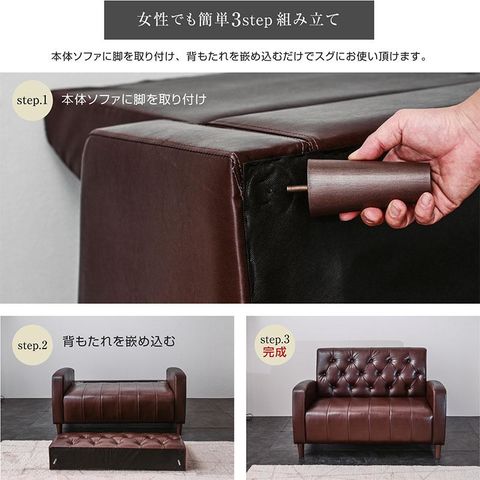 ・大人な雰囲気を醸し出すシックヴィンテージスタイル ・ワンルームにも起きやすいコンパクトサイズ ・座面はしっかりした弾力で抜群の座り心地のポケットコイル仕様 ・背もたれはもたれかかりやすい緩やかな角度 ・ウレタンを詰め込んだひじ掛け ・座面の生地はストライプステッチ加工で滑りにくい ・脚を外せば空間を広く魅せるロータイプソファに ・木目調の脚でお部屋の雰囲気アップ ・脚裏は床が傷つかないように傷防止フェルト付き ・ロータイプ用の脚も付いてくる ・PVCで汚れもサッと拭くだけ簡単お手入れ |