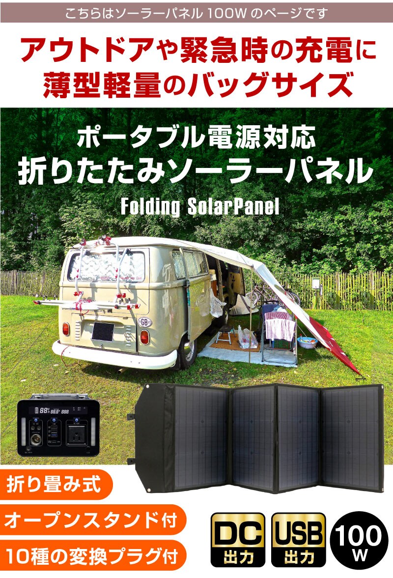 ソーラーパネル 100W ソーラーチャージャー 折りたたみ式 DC/USB スマホやタブレット 超薄型 軽量 コンパクト ポータブル電源用 折り畳み 太陽光発電 / ブラック / -ART