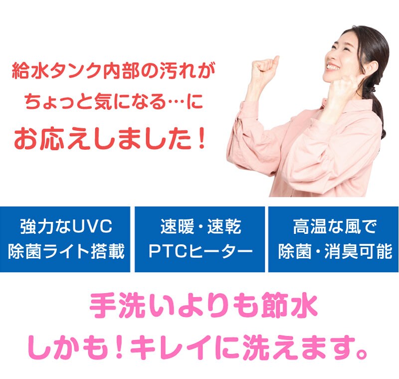 | 給水方式 | 内蔵タンク式 (抗菌素材仕様:抗菌99.9%クリア) |