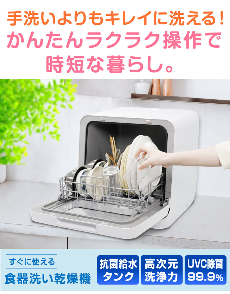 食器洗い乾燥機 食洗機 洗剤 対応 ラック 工事不要 食洗器 食器い洗機 食器洗浄機 食器乾燥機 タンク式 UVC除菌ライト 抗菌給水タンク / ホワイト / -ART