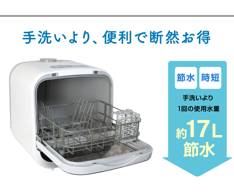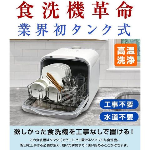 食洗機 食洗器 食器洗浄機 食器乾燥機 食器洗い乾燥機 工事不要 タンク式 プチ食洗 卓上 新生活 キッチン家電 高温洗浄 省エネ 据え置き コンパクト / ホワイト / -ART