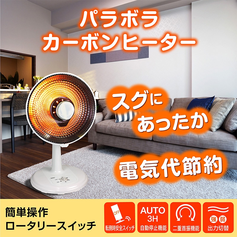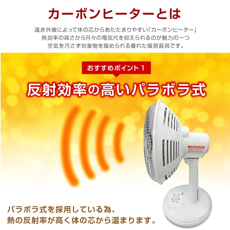 ヒーター 電気ストーブ 1年保証 カーボンヒーター パラボラ おしゃれ スリム 小型 暖かい 遠赤外線ヒーター 遠赤外線ストーブ 電気ヒーター / ホワイト / -ART