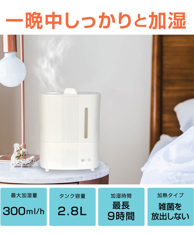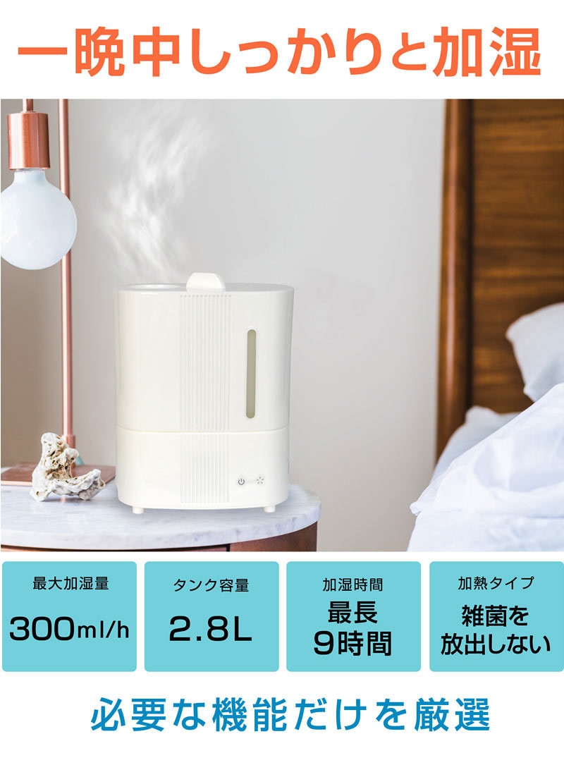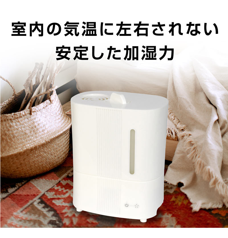 加湿器 卓上加湿器 卓上 オフィス スチーム加湿器 おしゃれ 長時間 衛生的 大容量 小型 コンパクト 静音 省エネ 節電 / ホワイト / -ART