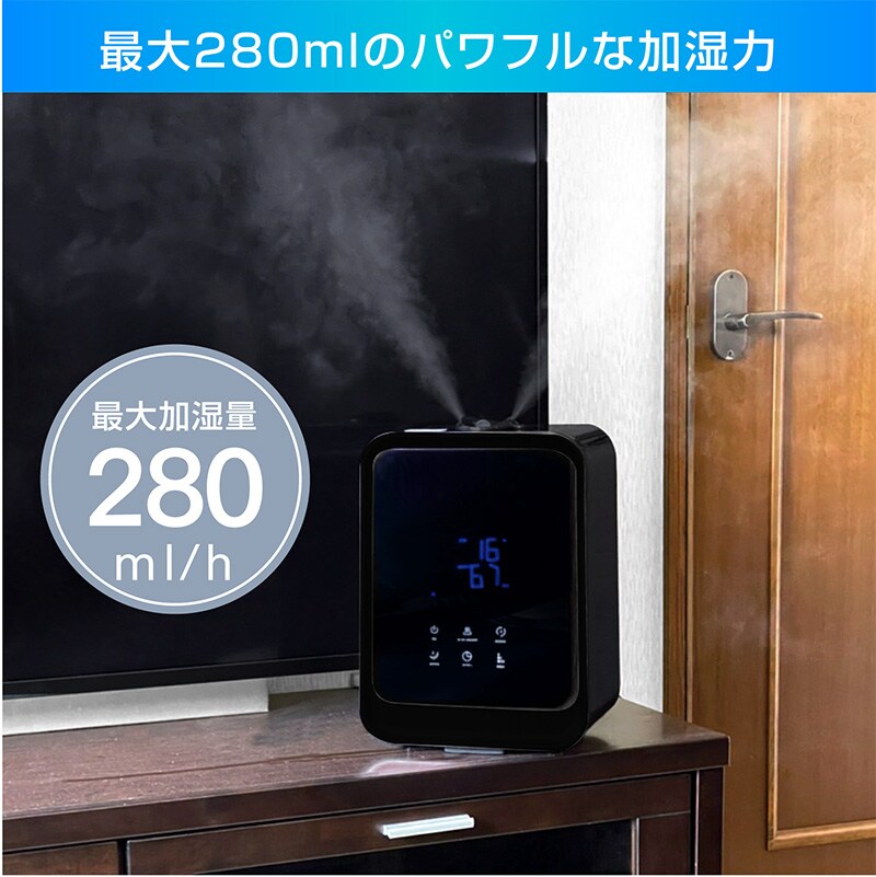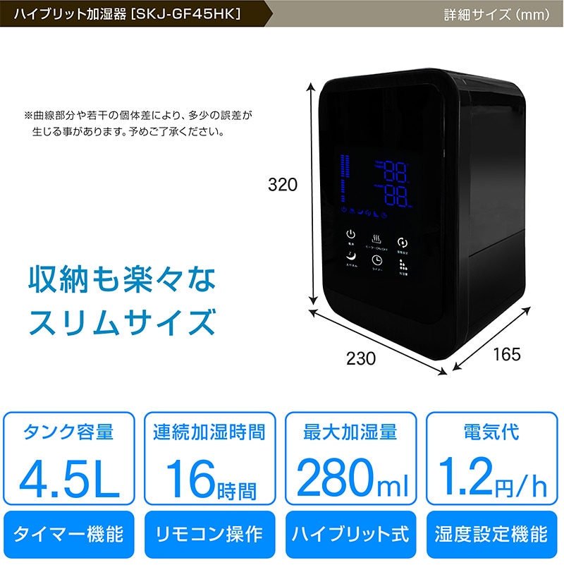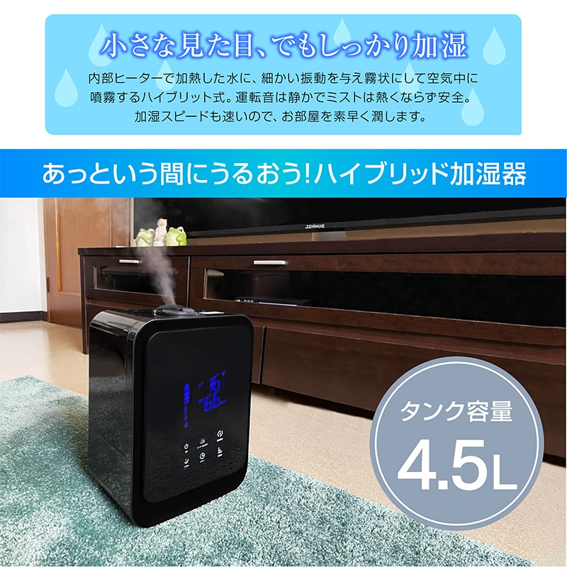 加湿器 卓上 おしゃれ 大容量 1年保証 簡単給水 パワーミスト 超音波 加熱式 ヒーターハイブリッド式 連続加湿 3段階加湿量調整 アロマ SKJ-GF45HK / ブラック / -ART