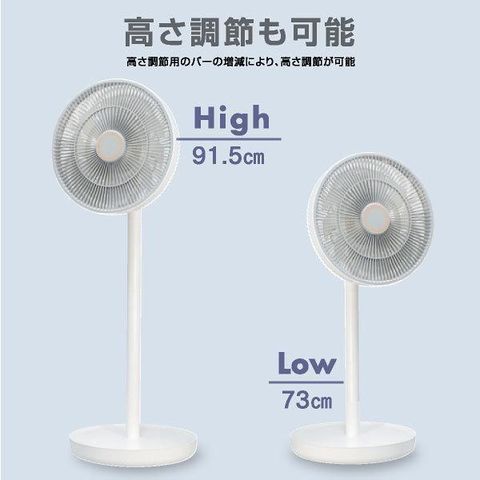 扇風機 DCモーター 充電式扇風機 リビング扇風機 おしゃれ コードレス 高さ2段階 コンパクト収納 リビングファン DCファン / ホワイト / -ART